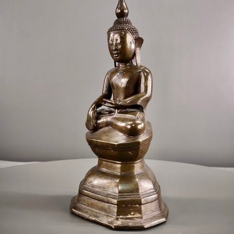 Burmesisk sjælden forgyldt træfigur af Burmas Buddha