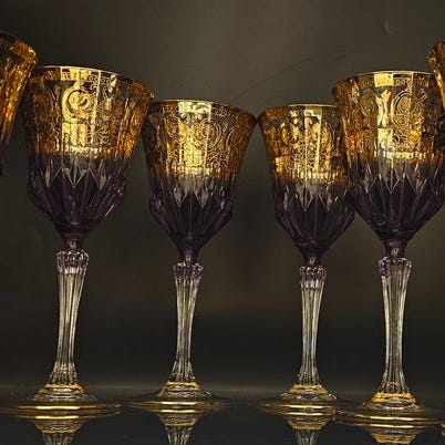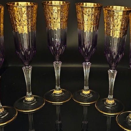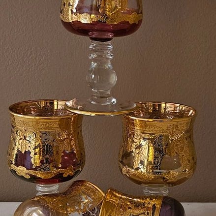 Afgrønnet med store og værdifulde dekorationer i 24 karat guld, udskåret, i fuldt veneziansk stil, dekoreret strengt med pantograf, ikke silketrykt.