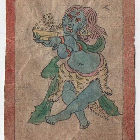 Feuillet annoté n°22 : Représente le jeune Mahavira (Vardhamana) lors de l'épisode du serpent dans l'arbre, symbolisant son courage