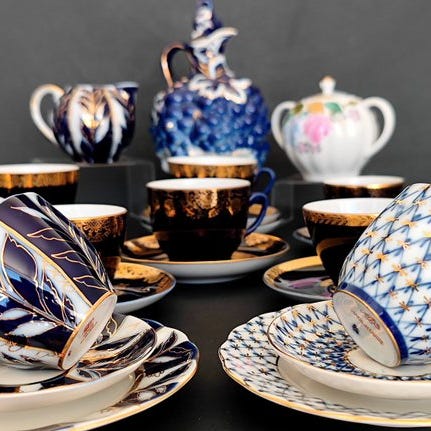 Bring traditionen fra russisk kejserlighed ind i din kaffestund med Lomonosov Porcelæns Kaffekop Koboltnet. Dette porcelæns Kaffesæt er fremstillet på den russiske kejserlige porcelænsfabrik. Koppen, underskålen og desserttallerkenen er håndmalede og udsmykket med ægte 22-karat guld.