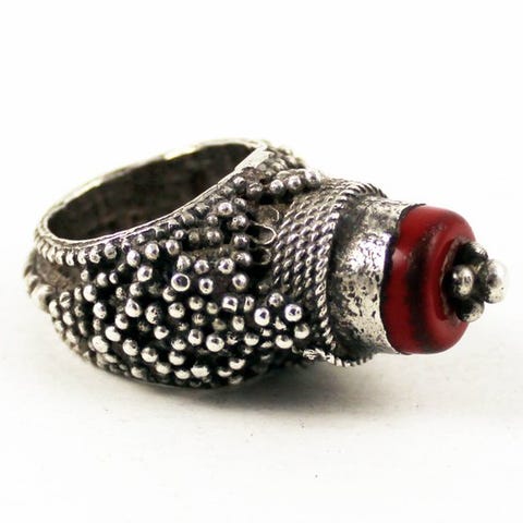 Guldfarvet sølvarmbånd fra Saudi-Arabien, middel af det 20. århundrede, med glasperler; længde 74 cm, spænde 11 x 9 cm, dybde 4,5 cm, vægt 320 g, i god stand med brugsspor. Klik på den blå "gå til varen" knap, for at købe eller byde på denne vare. Den samlede pris vil blive vist inden du afgiver dit bud.