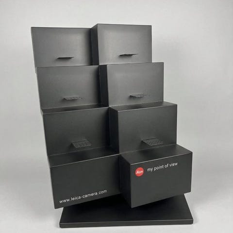 2x Leica Store objektivstativer uden Leica-logo (uden indlæg)
