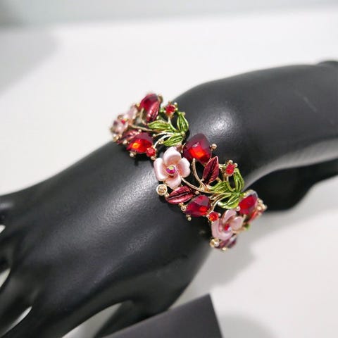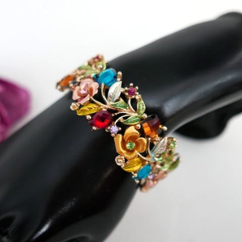 Guldbelagt metal dekoreret med emalje, rhinsten og perler