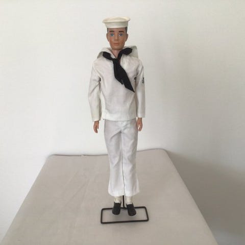 Ken – Lager Nr. 750 (blond), Tidlig 1960’erne udgave, oprindelse Japan, næsten som ny tilstand, med original æske, mål 8 x 30 x 5 cm, inklusive stand, hæfte og original etiket omkring venstre håndled. Klik på den blå "gå til varen" knap, for at købe eller byde på denne vare. Den samlede pris vil blive vist inden du afgiver dit bud.