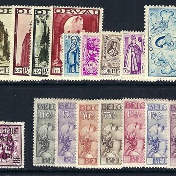 Belgien, 10 komplette årgange (1950–1959), postfrisk, katalog OBP/COB 823/1120 + BL29/31, uden certifikat eller ekspertsignatur. Klik på den blå "gå til varen" knap, for at købe eller byde på denne vare. Den samlede pris vil blive vist inden du afgiver dit bud.
