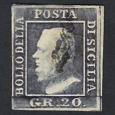 Oprindelse: Antikke italienske stater - Sicilien; Titel: 20 g ardesia violaceo Sass 13d fuldt margineret brugt Cert. Gazzi f.AD; Tilstand: Annulleret. Klik på den blå "gå til varen" knap, for at købe eller byde på denne vare. Den samlede pris vil blive vist inden du afgiver dit bud.