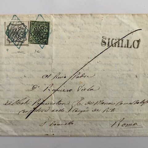 Oprindelse: Antikke italienske stater – Kirke-stat; Titel: 24 Mar Quadricolore tutta della II^ Em. 5+10+20+80 c. Sass 25+26+28+30 på kuvert fra Rom til USA; Tilstand: Med adresse og anvendt til post; År: 1870; Certificeret med ekspertunderskrift. Klik på den blå "gå til varen" knap, for at købe eller byde på denne vare. Den samlede pris vil blive vist inden du afgiver dit bud.