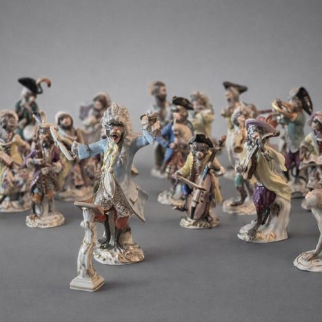Meissen porcelænsfigur fra Tyskland, ca. 1930–1940, i fremragende stand, skildrer en stor familie og rose, blå dobbelt-sværd mærke i bunden; stand medfølger ikke. Klik på den blå "gå til varen" knap, for at købe eller byde på denne vare. Den samlede pris vil blive vist inden du afgiver dit bud.