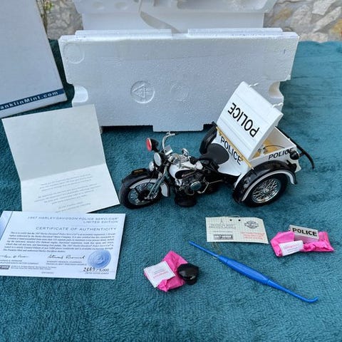 Franklin Mint - Modelmotorcykel - 1958 HARLEY-DAVIDSON DUO-GLIDE - Med SIDECA...