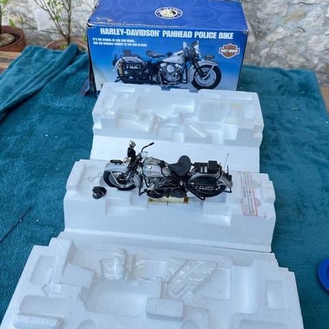 Harley-Davidson 1958 Duo-Glide med sidevogn, begrænset udgave, die-cast model i flere farver, som ny og i original emballage. Klik på den blå "gå til varen" knap, for at købe eller byde på denne vare. Den samlede pris vil blive vist inden du afgiver dit bud.