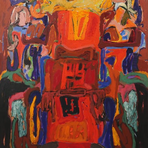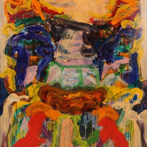 Ad Snijders (1929–2010), nederlandsk kunstner, oljemaleri med titel 'Zonder titel', fra 2003, målene 150 × 60 cm, i god stand, originaludgave, håndsigneret, abstrakt stil. Klik på den blå "gå til varen" knap, for at købe eller byde på denne vare. Den samlede pris vil blive vist inden du afgiver dit bud.