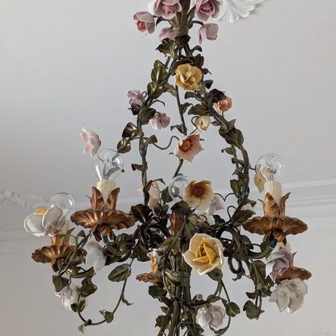 Stjernelampe i Messing og Kobber, model Etoile, fremstillet i Frankrig, i fremragende stand med minimale brugsspor, fuldt funktionsdygtig, højde 65 cm, diameter 27 cm, cirka 1970–1980, håndlavet med udskårne motiver og farvede glasperler inlays; E14-pære medfølger ikke. Klik på den blå "gå til varen" knap, for at købe eller byde på denne vare. Den samlede pris vil blive vist inden du afgiver dit bud.