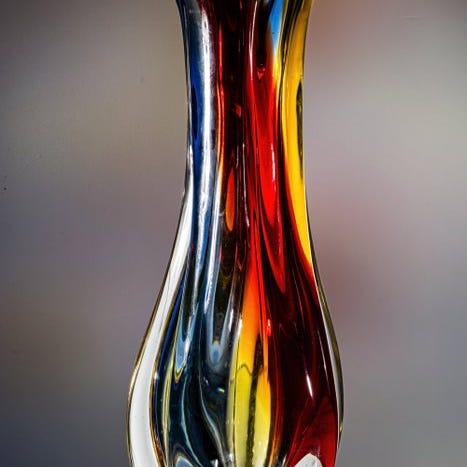 Et særligt formet Sommerso-vase af brunt og citrinfarvet glas