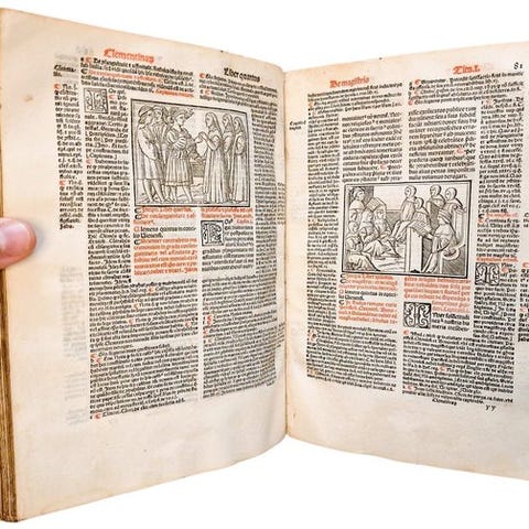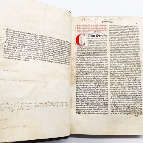 TO VIGTIGE POSTINCUNABULI, SAMLET I EN MAGNIFIK INDBINDING I RELIEF, TIDLIGT