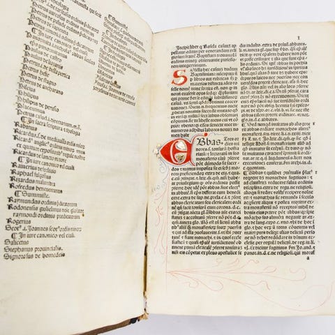 Saint Antoninus Florentinus, [Post Incunable] Summe Maioris - med Tractatus de Censuris Ecclesiasticis, lyonisk udgave 1511 i fuld læderbind, håndfarvede initialer, latin, 544 sider, 315 × 214 mm. Klik på den blå "gå til varen" knap, for at købe eller byde på denne vare. Den samlede pris vil blive vist inden du afgiver dit bud.