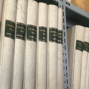 Seks bind med komplette udgaver af Corriere dei Piccoli fra 1969 til 1971. Indbindingen er meget smuk, og albummene er i fremragende stand, som det ses på foto.