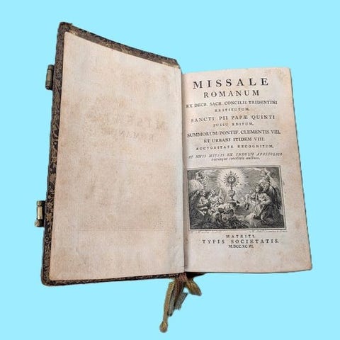 Canon Missae, Romae, Typis Vatican, 1658; en storformateret illustreret latin udgave, klæbet i fuld læder med kardinaliske våbener, 168 sider, trykt i rødt og sort med plader uden for teksten. Klik på den blå "gå til varen" knap, for at købe eller byde på denne vare. Den samlede pris vil blive vist inden du afgiver dit bud.