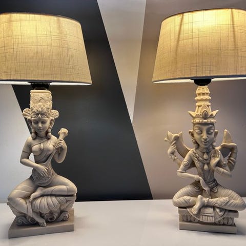 Gå som en egyptier! Hvilket imponerende sæt bordlamper med farao-hoveder!