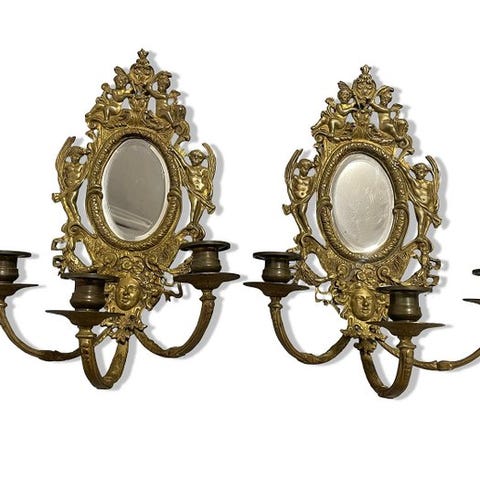 Væglampe med levende lys - Forgyldt, Jern, Krystal - Håndsmedet bladguld