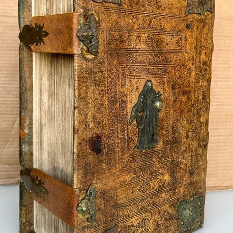 Tobinds latin udgave af den illustrerede Bibel Biblia illustrata, Historiae Celebriores Veteris Testamenti Iconibus Repraesentatae, udgivet i 1712 af J. A. Endter i Nürnberg, halvlæderbind, 44 × 32 cm, 500 sider, 151 billeder fra Det Gamle Testamente og 108 fra Det Nye Testamente, kobberstik af C. Weigel efter J. og C. Luyken, F. A. Meloni og P. Decker, i god stand med brugsspor. Klik på den blå "gå til varen" knap, for at købe eller byde på denne vare. Den samlede pris vil blive vist inden du afgiver dit bud.