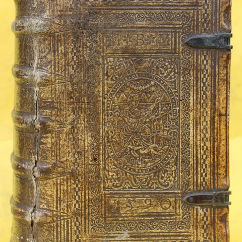 Sjældent illustreret latin bibel fra Guillaume Rouillé's udgivelse (Lyon) fra året 1562. Bindet i et blindstøbt svinelæderbind af tidens stil, trukket over trædebager, uden boglukning. Med støbt titelblad med træsnit-bordure og talrige tekst-træsnit.