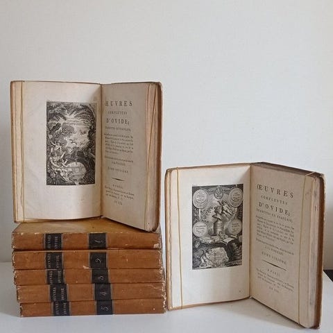 Ovids Metamorfoser, italiensk oversættelse af Lodovico Dolce og illustreret af Giovanni Antonio Rusconi, illustreret udgave fra 1557 med 85 graveringer, 309 sider, læderbind, størrelse 227 × 165 mm, i fin stand. Klik på den blå "gå til varen" knap, for at købe eller byde på denne vare. Den samlede pris vil blive vist inden du afgiver dit bud.