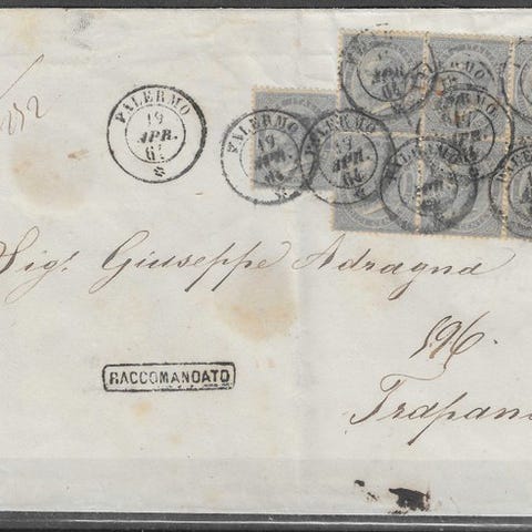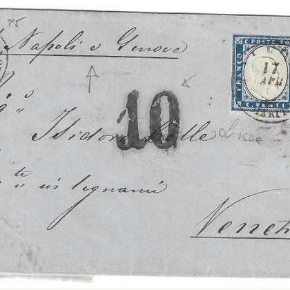 Oprindelse: Storbritannien; titel: Mixed franking Engeland en Griekenland via Italië; tilstand: brugt, med en spektakulær mixed frankering bestående af et 8p Queen Victoria-stempel fra England og et Hermes-stempel på 40 L til Grækenland samt en blå forsendelsesnota på 40 L, Michel-katalogiseret fra 1871. Klik på den blå "gå til varen" knap, for at købe eller byde på denne vare. Den samlede pris vil blive vist inden du afgiver dit bud.