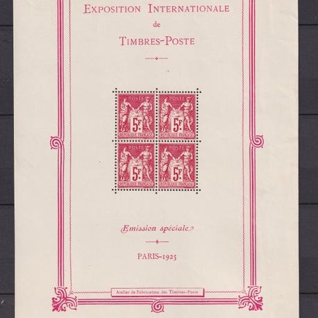 Frankrig, Expostion philatélique internationale de Paris neuf** avec certificat, Yvert Bloc-feuillet 1, fra 1925, mint uden hæftning. Klik på den blå "gå til varen" knap, for at købe eller byde på denne vare. Den samlede pris vil blive vist inden du afgiver dit bud.