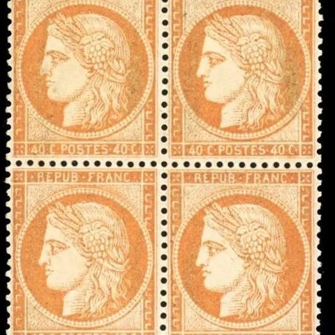 Frankrig, Cérès dentelé, 2 c. brun-rose, firerblok, ubrugt uden hængsler, fra 1872, Yvert 51, CERES-certifikat. Klik på den blå "gå til varen" knap, for at købe eller byde på denne vare. Den samlede pris vil blive vist inden du afgiver dit bud.
