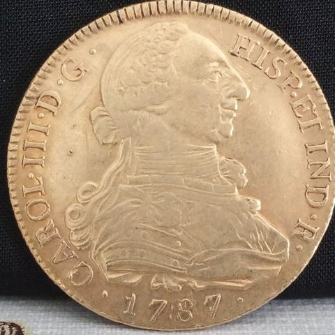Guldbelønning på 8 escudos af Carlos IV, 1802 i Santa Fe de Nuevo Reino, tilstand uden certifikat. Klik på den blå "gå til varen" knap, for at købe eller byde på denne vare. Den samlede pris vil blive vist inden du afgiver dit bud.