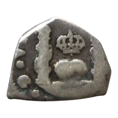 Mønt af 2 reales sølv fra Juana og Carlos, 1504-1555, præget i Mexico, tilstand EBC; en meget sjælden mønt købt i numismatik med købsfaktura.