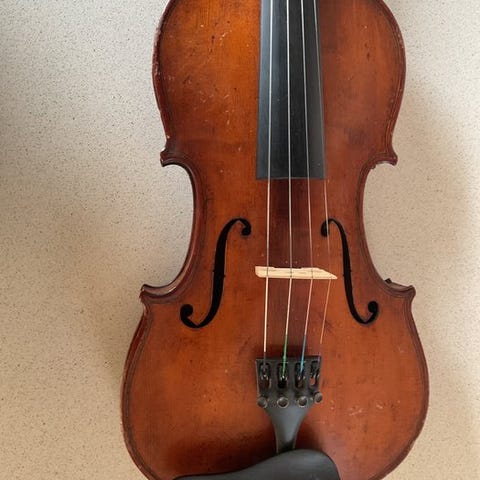 Ungarsk violin mærket Antal Braun, årgang 1914, i god fysisk stand og testet og funktionsdygtig. Klik på den blå "gå til varen" knap, for at købe eller byde på denne vare. Den samlede pris vil blive vist inden du afgiver dit bud.