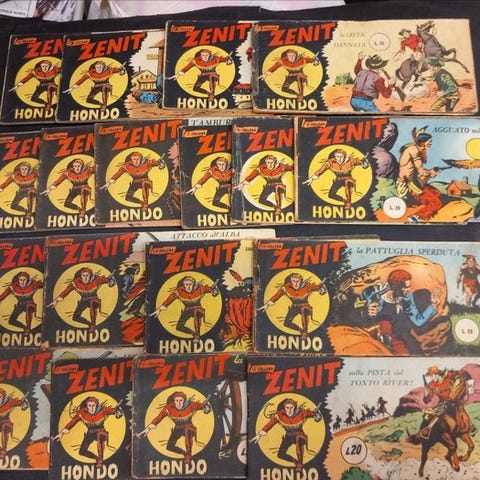 Edizioni Periodici Bunny-Cenisio. Brossura, cm 18x13. Bunny første serie, 1957,-nr. 1 til 3-5 til 13 og supplement nr. dobbelt 1957. Avisstand og lagerlokale, Forsiderne blanke og med smuk patina. Der bemærkes en mindre skramme ved den øverste kant af ryggen på nr. 3.
