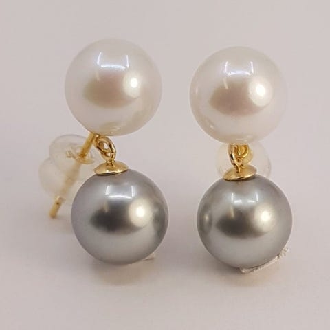 De hvide Akoya-perler passer sammen med den gyldne guldring og skaber en smuk farvekombination.