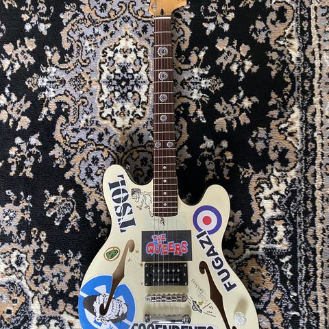 Epiphone B.B. King Lucille guitar, håndsigneret af B.B. King med certifikat for ægthed; god stand, vægt 4,5 kg, uden etui. Klik på den blå "gå til varen" knap, for at købe eller byde på denne vare. Den samlede pris vil blive vist inden du afgiver dit bud.