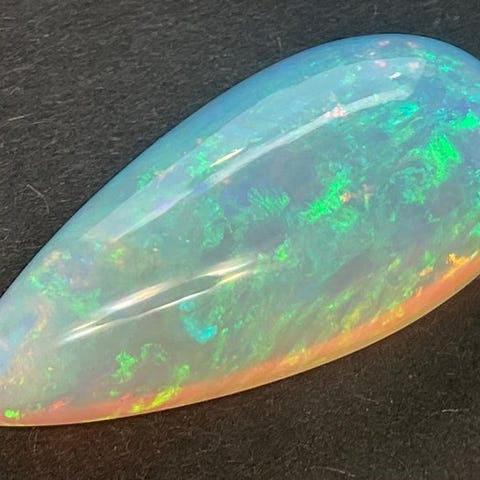 Opal 20,98 ct, dråbe cabochon-snit i lys orange, oprindelse Etiopien, IGI-certifikat med rapportnummer 600320034. Klik på den blå "gå til varen" knap, for at købe eller byde på denne vare. Den samlede pris vil blive vist inden du afgiver dit bud.