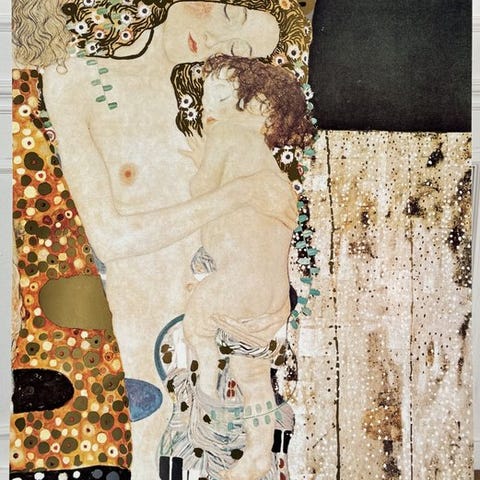 Klimt udviklede et særligt visuelt sprog, der kombinerede naturlige figurer med flade, ornamentale overflader, ofte beriget