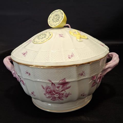 På trods af krigstidens begrænsninger blev forgyldede kanter stadig anvendt, selvom Herend Porcelain Manufactory også stod over for markant reduceret guldforsyninger på det tidspunkt. Dekorationen er helt håndmalet og viser Herends engagement i håndværkskvalitet selv under udfordrende omstændigheder.