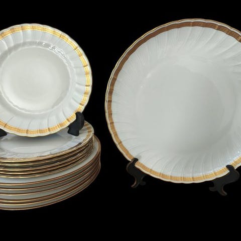 Til salg et berømt porcelænskunstværk fra den berømte manufaktur A. Giraud & C.ie. Dette service til 12 personer repræsenterer topkvaliteten af Limoges-porcelæn, internationally kendt siden det 18. århundrede som "kongernes valg".