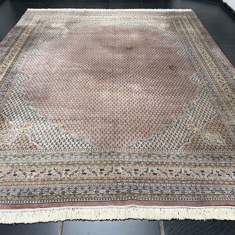 Håndvævet indisk tæppe Sarugh i uld på bomuld, 305 × 249 cm, flerfarvet, i god stand med tegn på alder og brug. Klik på den blå "gå til varen" knap, for at købe eller byde på denne vare. Den samlede pris vil blive vist inden du afgiver dit bud.