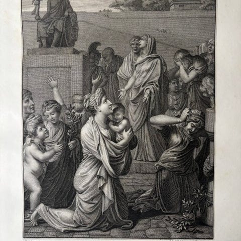 Louis-Isaac Le Maistre de Sacys La Sainte Bible, Contenant L'Ancien Et Le Nouveau Testament, en illustreret 12-bind udgave, udgivet i Paris af Maisonneuve et al. mellem 1789 og 1803, stort oktav, halvlederryg, blå permer, guldbogstaver, i alt 5633 sider, 300 plader og et foldkort. Klik på den blå "gå til varen" knap, for at købe eller byde på denne vare. Den samlede pris vil blive vist inden du afgiver dit bud.