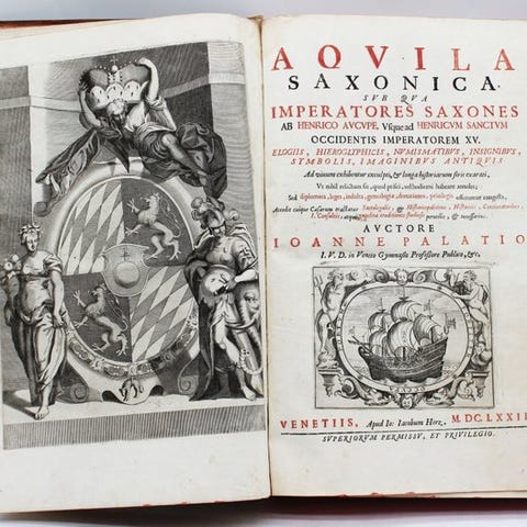 Du Tillet, forfatter/illustrator, Roys de France, illustreret første udgave fra 1580 i dette format, på fransk, læderbinding, 640 sider, 321 × 228 mm, Paris, Jacques du Puys, 1580, med udenfor teksten tegninger og i god stand. Klik på den blå "gå til varen" knap, for at købe eller byde på denne vare. Den samlede pris vil blive vist inden du afgiver dit bud.