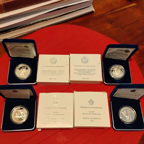 - 6 mønter 500 lire, sølv 835, 66 g