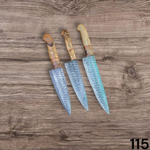 Disse knive er fremstillet af lav- og højCarbon Damaskustål, ikke rustfrit stål. Du kan ikke vaske dem med vand og sætte dem tilbage i kassen med det samme. Du skal vaske dem med vand, tørre dem, derefter påføre vegetabilsk olie, inden du sætter dem tilbage i kassen.