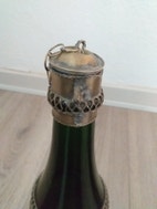 Flasker, Green Spirit vintage flasker, To flotte gamle grønne vinflasker med tin påsætning / flasker med tin montering / vinflasker med tin dekoration. 32 og 32,5 cm høje. Flot stand med lidt skader / brugsspor i toppen ved lågene. Der står cH under bunden.