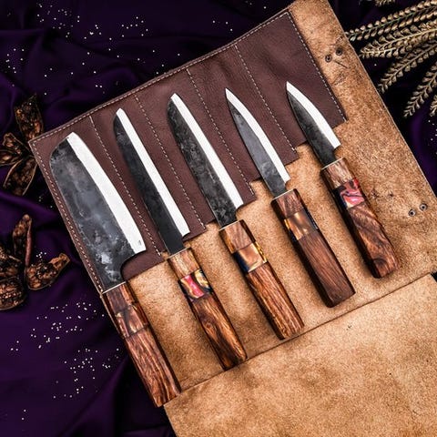 For at beskytte dine Damascus-knive mod rust, sørg for at rengøre dem med en klud og påføre vegetabilsk olie efter hver brug. Lad dem ikke være våde i lang tid. Opbevar dem altid oliede. Disse knive er fremstillet af lav- og højcarbon Damascus-stål og ikke af rustfrit stål. Du kan ikke vaske dem med vand og sætte dem tilbage i kassen. Du skal vaske dem med vand, tørre dem, SÅ PÅføre dem vegetabilsk olie, inden du sætter dem tilbage i kassen.