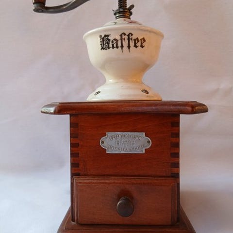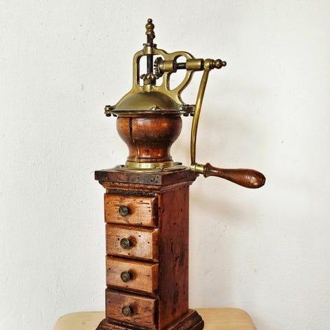 Dette er en vintage hånddrevet kaffekværn, formodentlig produceret af en italiensk fabrikant omkring 1940-tallet.