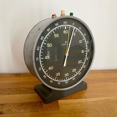 Metalkasse mekanisk mysterium penduull clock af Junghans fra Tyskland med 8-dages gangreserve uden slag i god brugt stand ca. 39 cm høj, 10 cm bred, 10 cm dyb, vægt 1200 g, skærm med lille revne, titel: flyver. Klik på den blå "gå til varen" knap, for at købe eller byde på denne vare. Den samlede pris vil blive vist inden du afgiver dit bud.