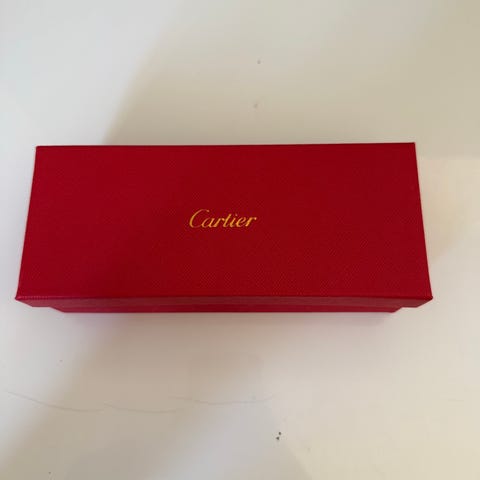Arme: Mørk brun/tortoesfarvet acetat med plade "Cartier" ved enderne