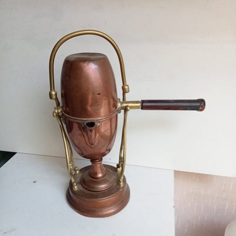 På kassen er der et vildsvinshoved i messing, gennem hvilket den malede peber kommer ud.